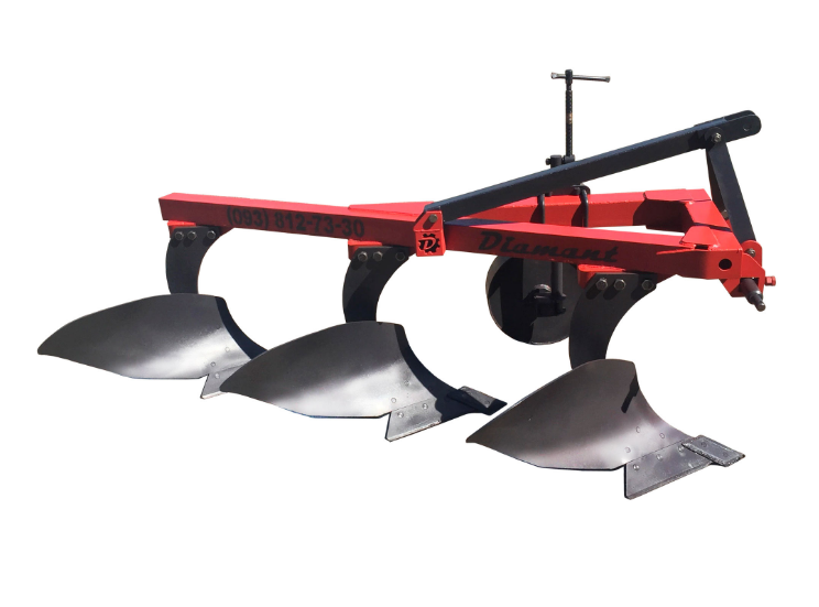 Плуг трьохкорпусне для трактора 50 л. с. приєднується до сільгосптехніки навісним способом. Використовується для оранки полів під посадку зернових і технічних культур. Підходить для помірних ґрунтів, де відсутні камені, плитняк і інші домішки, здатні погіршити якість обробки грунту і пошкодити тракторне обладнання. Якісно виорює землю на глибину до 30 сантиметрів.